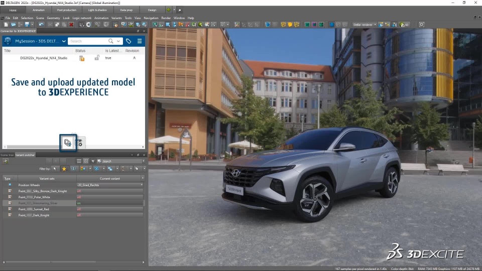 Tighter integration with the 3DEXPERIENCE platform means secure and easy access to the Marketing Master Model. Store and retrieve these models in Collaborative Spaces, extending new ways to share project data on the cloud. You can also output renderings to Collaborative Spaces and accelerate asset review and community sharing.