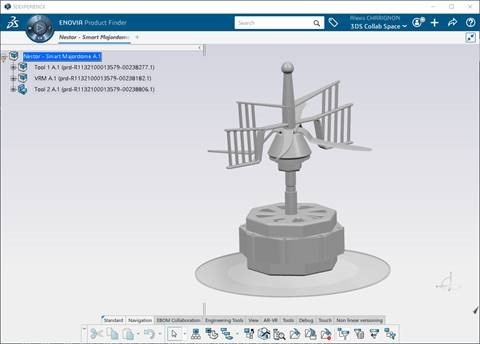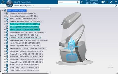With ENOVIA Product Finder, the filter is created by selecting sub-elements of the spare part and stored as "Nestor_tools".