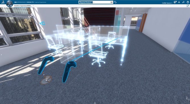 The video showcases four users equipped with four HTC Vive devices that are connected to the same experience. They can see each other, and they can also teleport themselves within the scene. By accessing the immersive inventory, users can choose a piece of furniture and dynamically place it on the floor. The paint palette is then used to switch material options on the furniture providing a level of interaction that invokes a sense of ownership over the product and the final design.