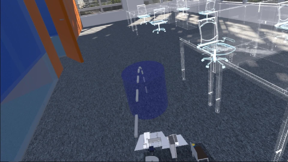 It’s highly recommended to provide a layout template for the user of the experience so they understand the purpose of the VR scenario. This template should include ‘ghosted’ furniture items that can be realized by adjusting the “Edge Bias Color” parameter of the specular/glossiness complex material type in the application.