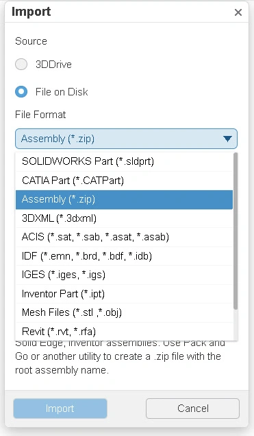 Several friends have noted that they may not have access to the 3DEXPERIENCE SOLIDWORKS role or the Collaborative Designer for SOLIDWORKS roles, so let's look closer into a direct import route, which doesn't enjoy the built-in real-time connection between SOLIDWORKS and the platform, but works well as one-time imports.