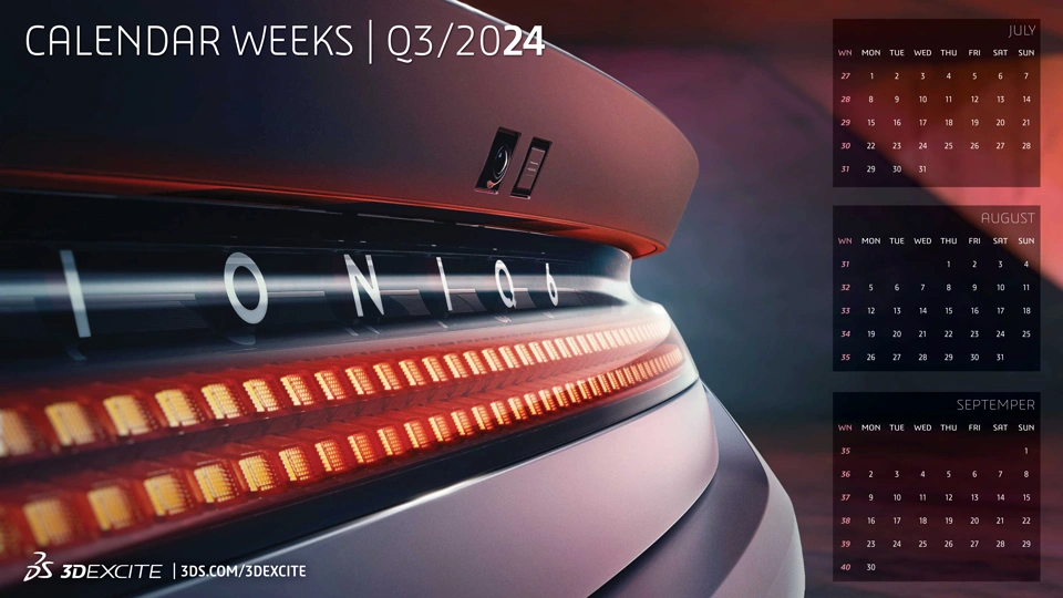 Enjoy our new 4K Desktop wallpaper for Q3 - featuring a close-up rear view of the new Hyundai IONIQ 6, rendered with DELTAGEN 2024x!