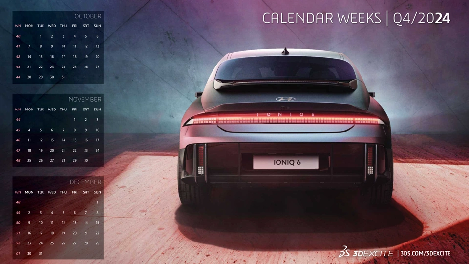 Enjoy our new 4K Desktop wallpaper for Q4 - featuring a rear view of the new Hyundai IONIQ 6, rendered with DELTAGEN 2024x!