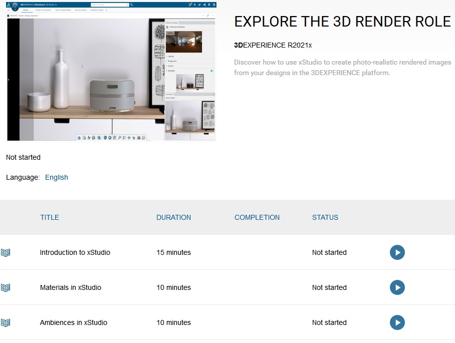 Learn how to use our new cloud-based rendering app xStudio in our online course on the 3DEXPERIENCE EDU Space Invest 35 minutes and transform your designs into stunning photorealistic images directly in your browser.