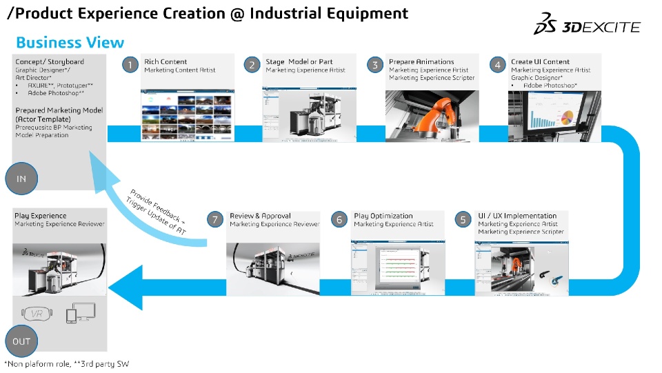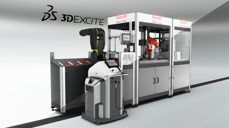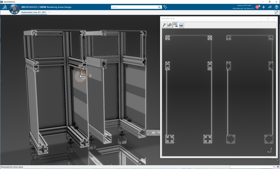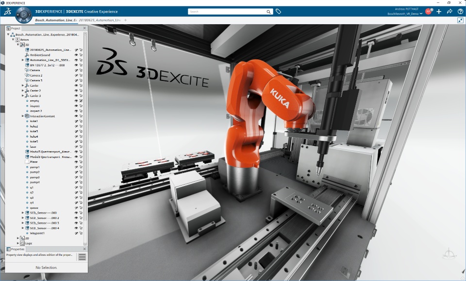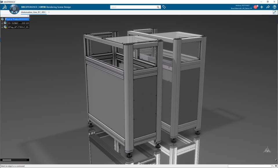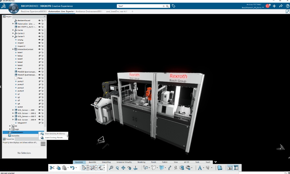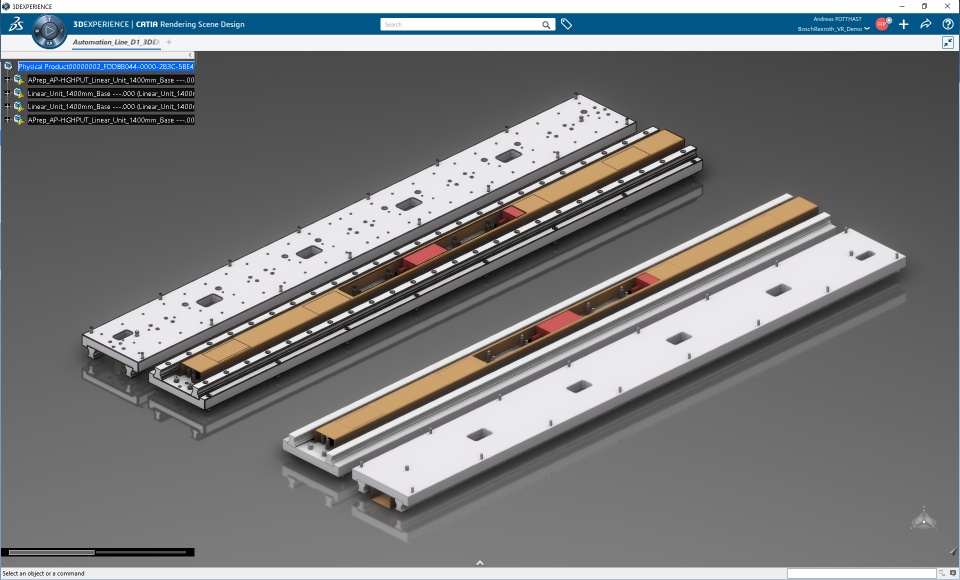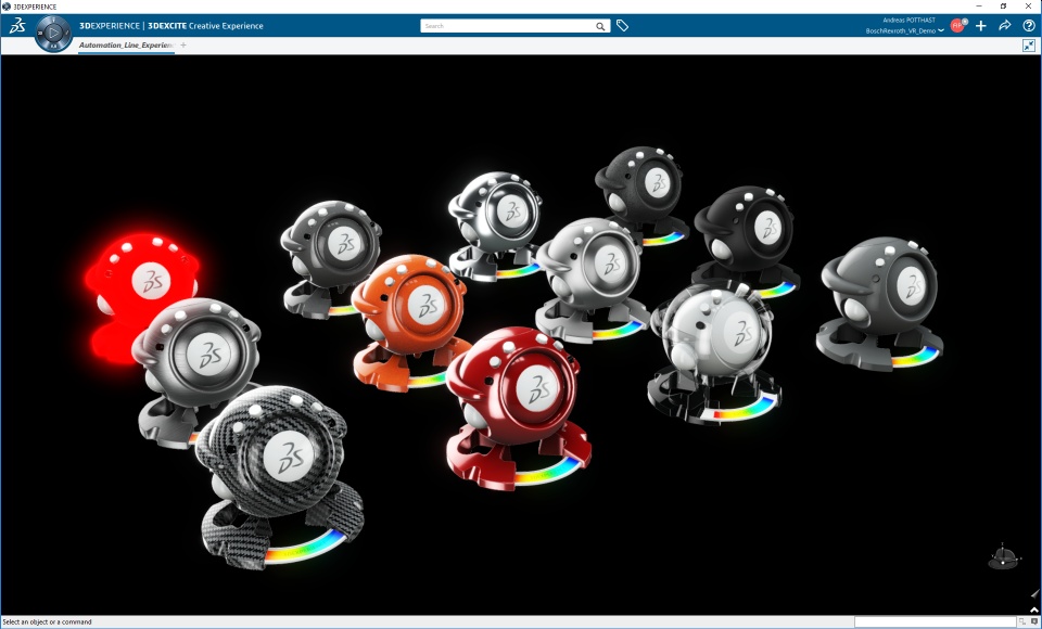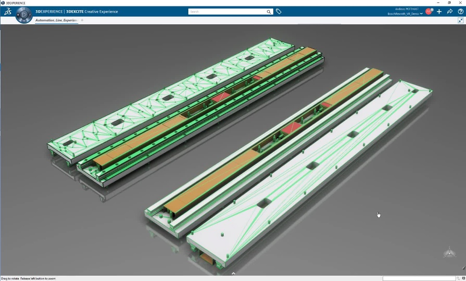 We started out with a shared engineering dataset of the Bosch Rexroth production line in our ENOVIA database. This enabled us to leverage the product life cycle, work in parallel and collaborate throughout the experience build-up.