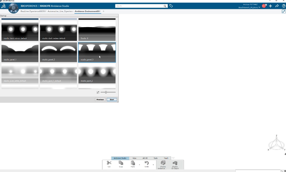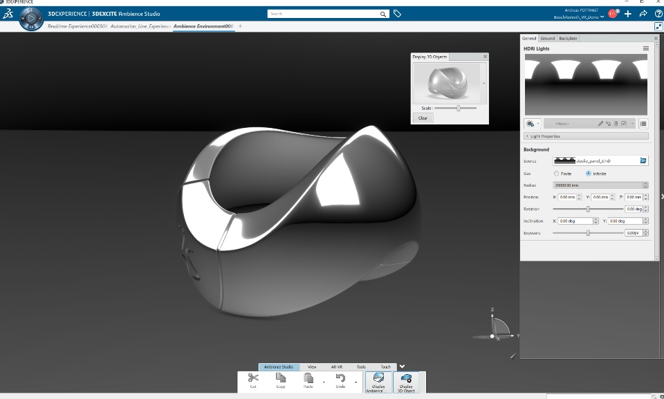 The dome environment was modeled using one of many CAD modeling tools provided within the 3DEXPERIENCE platform. Choose between SOLIDWORKS or CATIA modelling tools or just import the geometry using the DELTAGEN Converter role (3XF importer).