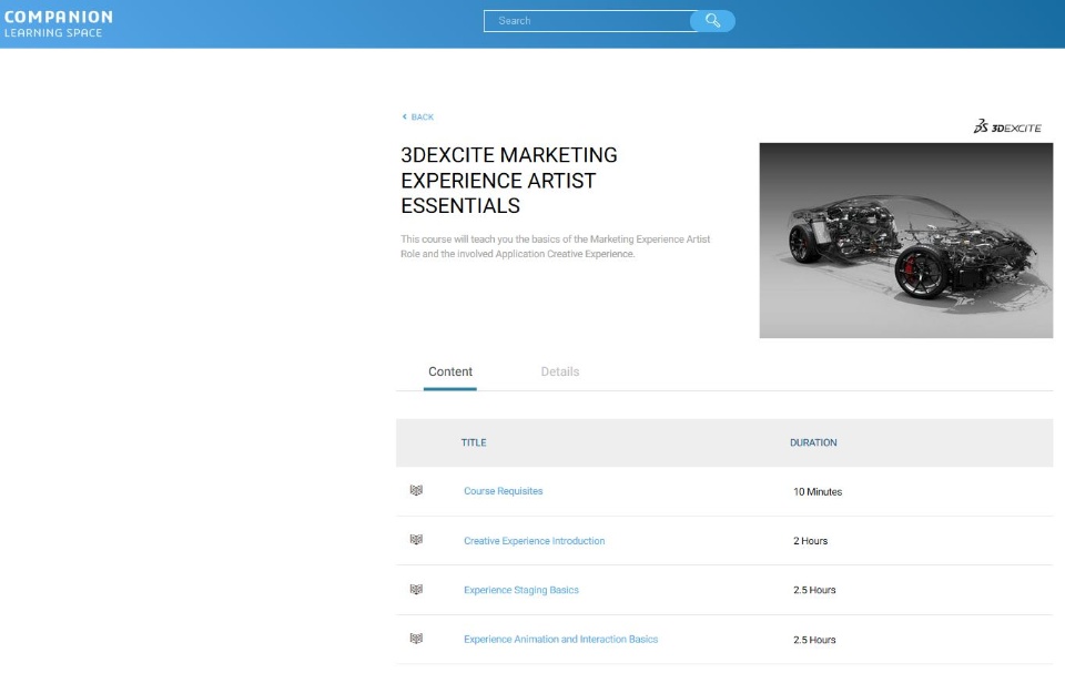 Visit the Companion Learning Space of Dassault Systèmes and learn in a comprehensive 7 hours online course the basics of the Marketing Experience Artist role and the involved application Creative Experience. Participation may incur a fee.