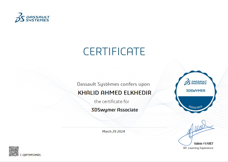 I have been issued a certificate from the 3DEXPERIENCE® Certification Center indicating that , I have successfully completed the requirements for 3DSwymer Associate.