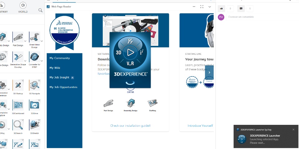 Hello, i have bought the 3Dexperience CATIA for students and after installed it every time i try to run any app, for example the part design app (same for other apps too) it just shows a a pop up that the launcher is running but it never actually opens anything. what could it be? thank you.