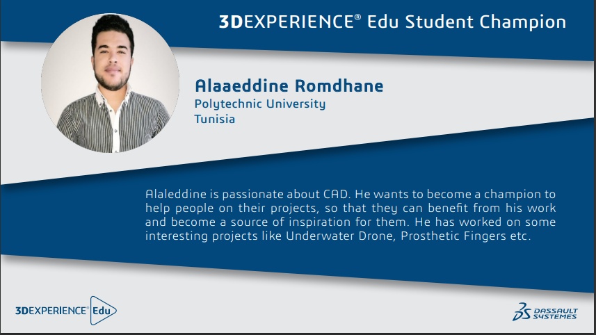 I am excited to announce that I have officially received my certificate of recognition, digital badge, and welcome kit, confirming my status as an official 3DEXPERIENCE Edu Student Champion. Along with being a SOLIDWORKS Champion, I am thrilled to be a part of the Champions' community, which provides an incredible opportunity to collaborate with other champions on various projects. The potential for collaboration and innovation with like-minded individuals who share my passion for this field is incredibly exciting. I am grateful for this chance to engage with other individuals who share my interests and am excited to see what we can accomplish together. I would like to express a special thank you to @SA for their support in my journey to becoming a 3DEXPERIENCE Edu Student Champion.