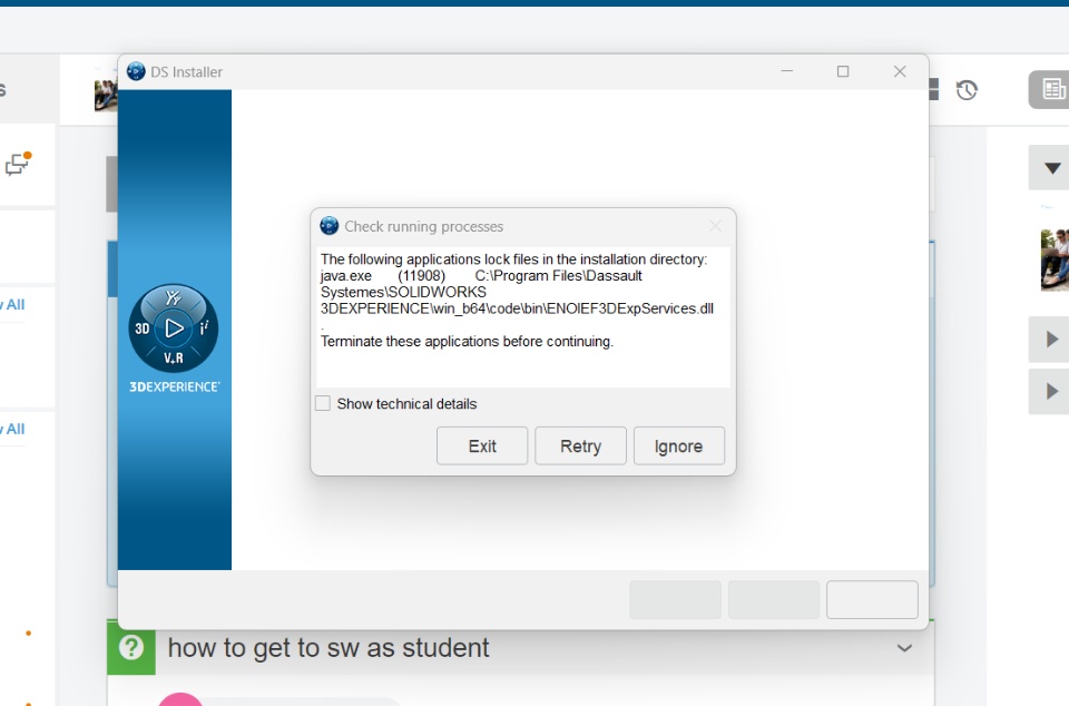 Edu 3DEXPERIENCE SOLIDWORKS Student Offers Installation Issue