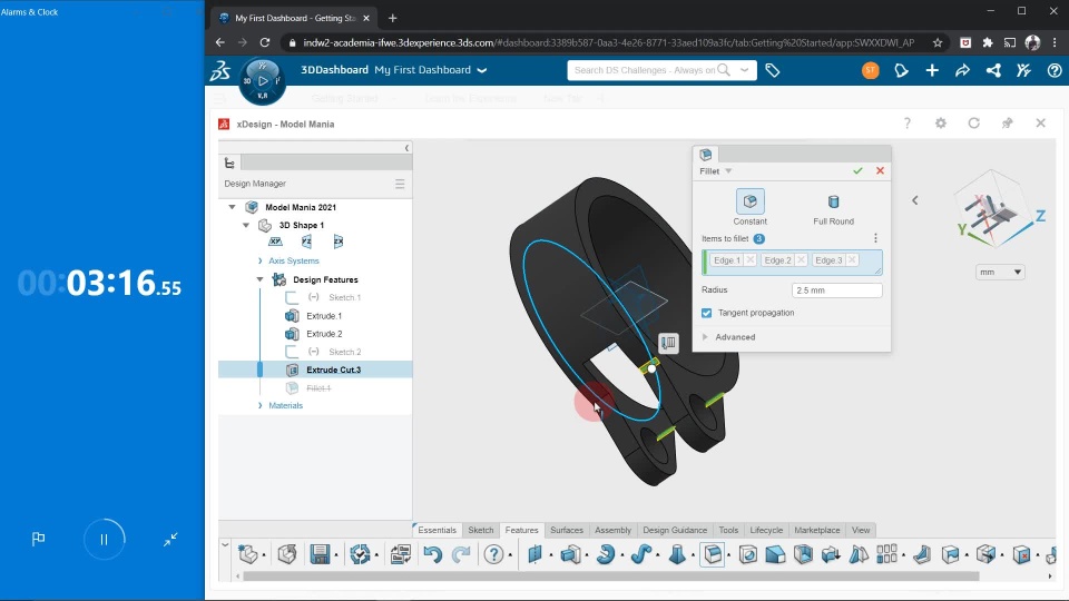 I am SHERWIN T. and this my uncut screen recording of the 3DEXPERIENCE World 2021 Student Model Mania Challenge. I followed all rules and regulations, my total time is 6min 28sec and I completed the model at 6min 25sec as fast as I can with highest accuracy hope you like it.