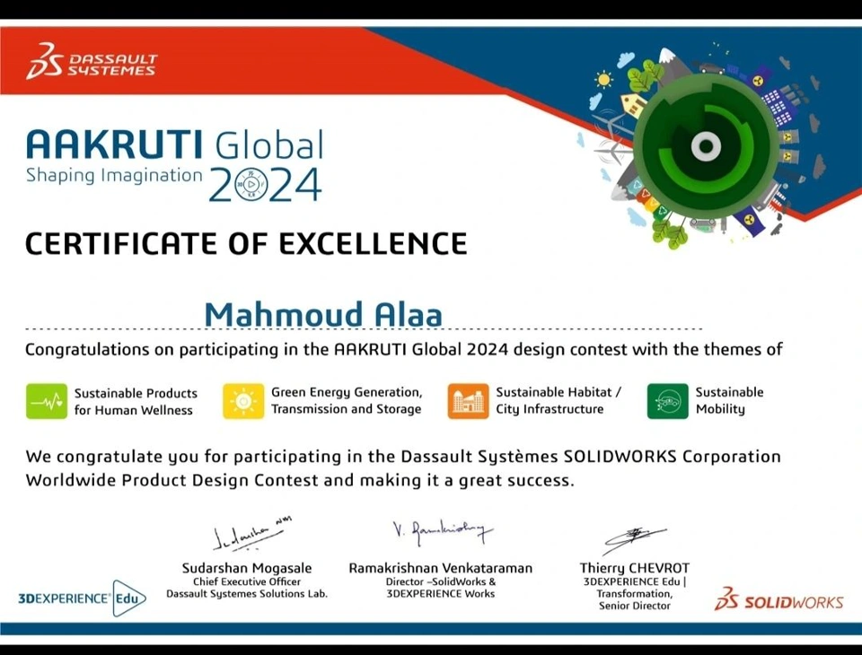 I’m thrilled to announce that I have received a certificate of participation in AAKRUTI2024 organized by SOLIDWORKS , Dassault Systèmes , and 2B CADCAMCIM . This has been an incredible experience that pushed the boundaries of my skills and knowledge in mechanical design field.