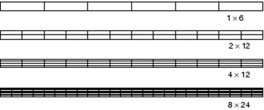 1 × 6 | 2 × 12 | 4 × 12 | 8 × 24 | |