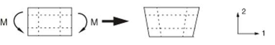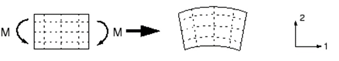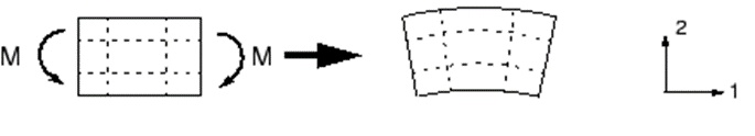 Figure 4–6 Deformation of a fully integrated, quadratic element subjected to bending moment M.