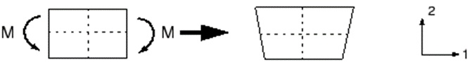 Figure 8 Deformation of a linear element with reduced integration subjected to bending moment M.