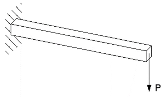 This is a classic test used to assess the behavior of a given finite element. Since the beam is relatively slender, we would normally model it with beam elements. However, it is used here to help assess the effectiveness of various solid elements.