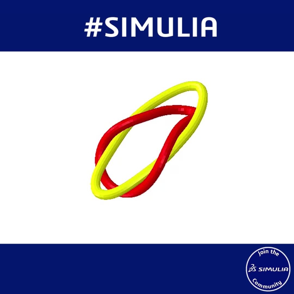 This is an Abaqus/Standard dynamic analysis. The two loops have hyperelastic properties and are manipulated with a combination of connector element and ordinary boundary conditions. The implicit dynamics in Standard was updated some years ago to have integration schemes set with the application parameter. This particular simulation uses the quasi-static application for the first several steps and the moderate dissipation application for the final few steps.