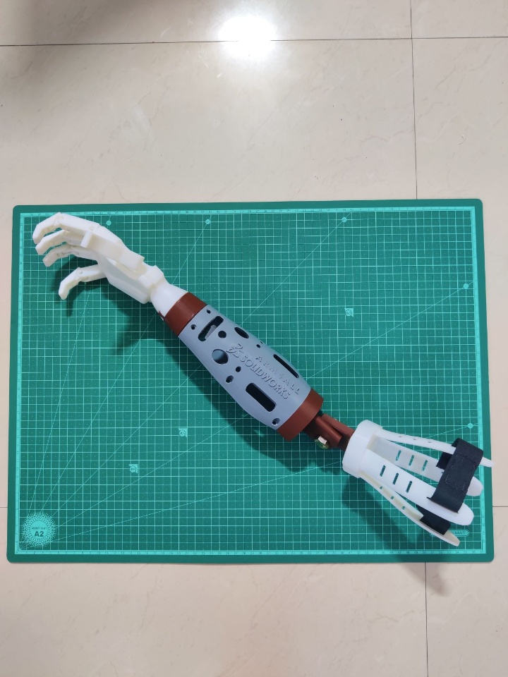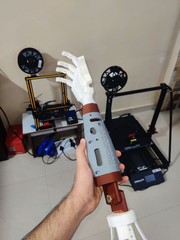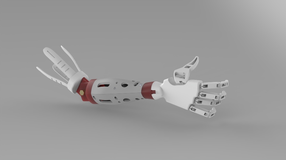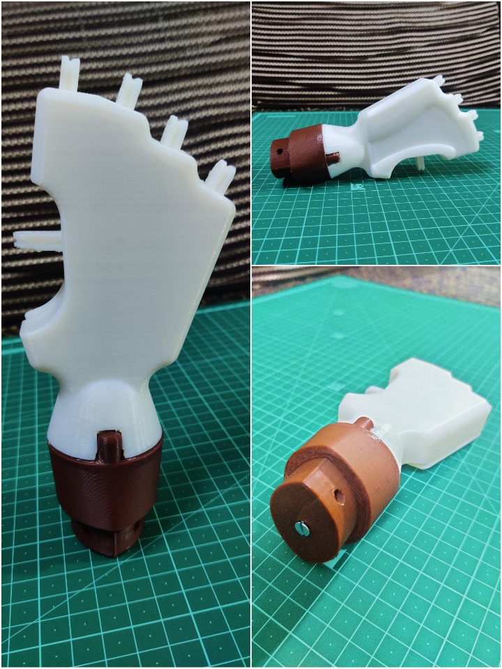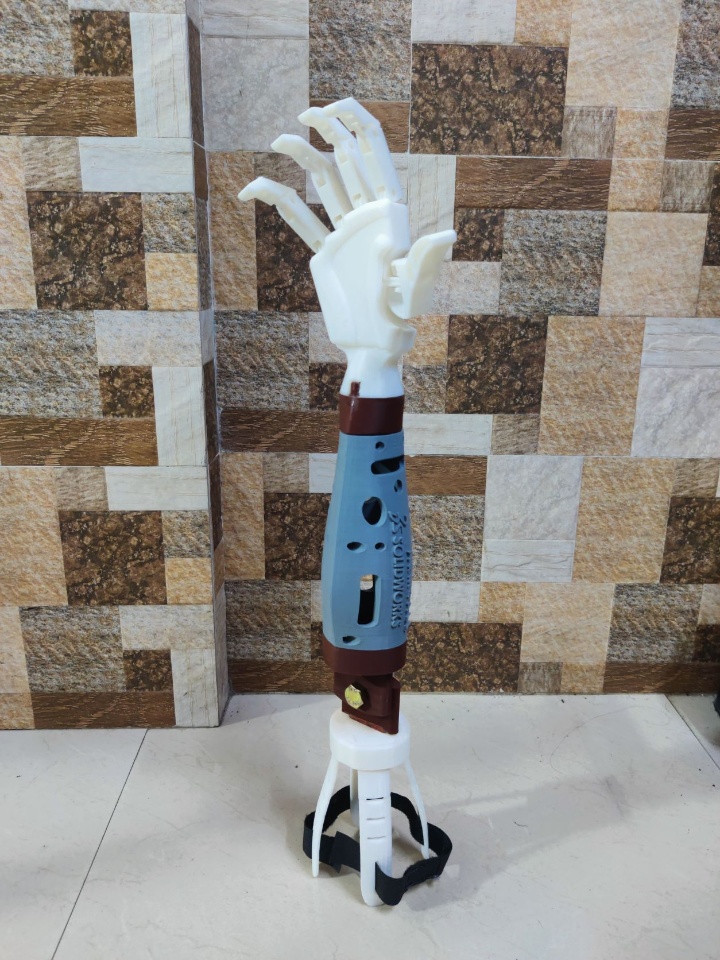 This forearm can be replaced by a short one which I have mentioned in the project video so that it could be interchanged for a below elbow patient and serve dual purpose. The below elbow structure then directly will be fitted into the cuff and can be sent for end usage. This prevents the design & manufacturing of multiple parts hence cost is saved.