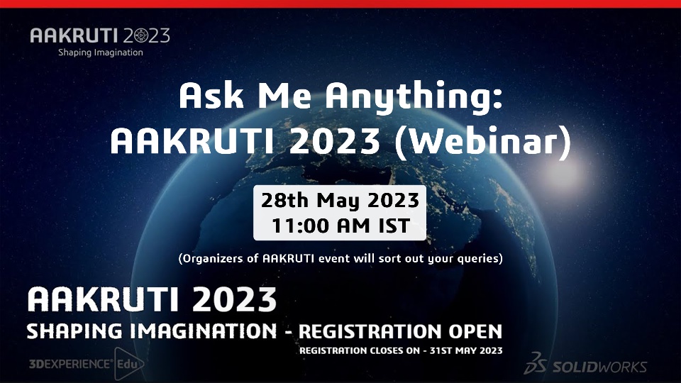 Do you have plenty of questions in your mind regarding AAKRUTI 2023? Don't worry, here's the webinar to sort out every query about the event. This session is organized by the SWUGN Leaders of India, and we have our renowned guests, Mr. @YD and Mr. @ND from Dassault Systèmes. Join us on May 28, 2023, at 11:00 AM IST by registering at the link below.