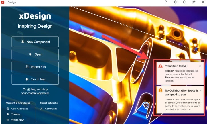 When you have launched xDesign for the first time and you have come across this error below: No Collaborative Space is assigned to you.