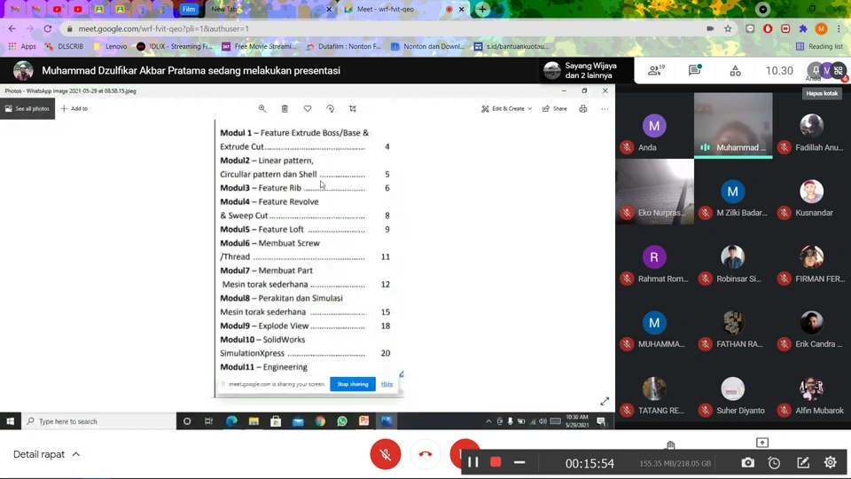 I made a regular meeting with my fellow majors on campus and did an introduction to solidworks and provided basic solidworks training by making parts and assembly design.