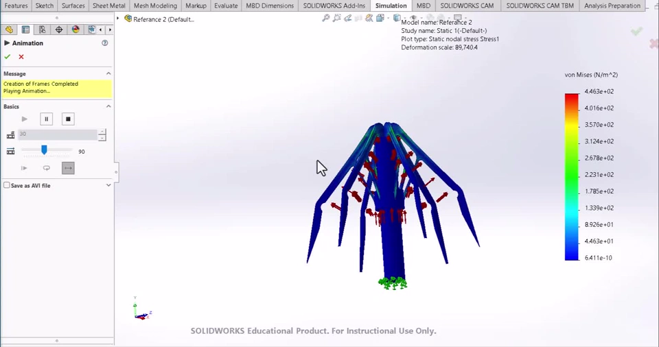 Results: The simulation highlighted the main issues — the arms had better motion range, but they couldn't handle external forces like wind pressure effectively. Material fatigue was still a concern, and the compliant structure struggled to maintain stability under load.