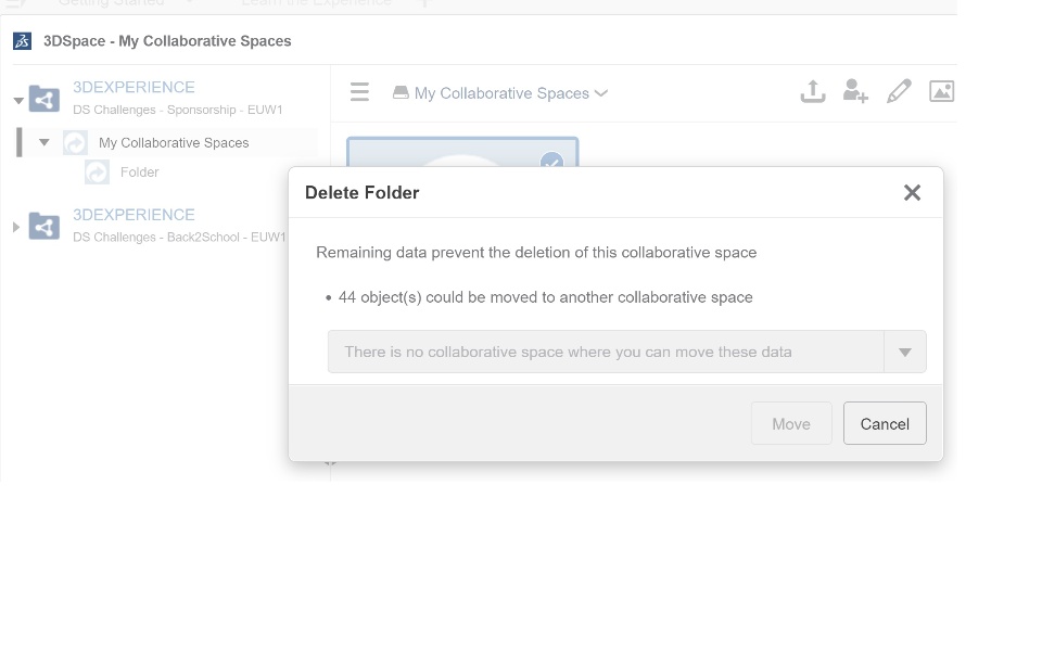 Why is it that I can't delete this collaborative space ? There is nothing in the folder but it keeps telling me that there is. I searched my Content and there's nothing. I've had this issue for months on end and no one has been able to tell me how to fix this. I have 2 licenses on the same 3Dexperience ID. Is that an issue that has something to do with recognizing files ?
