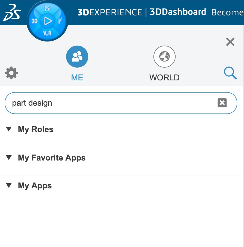 My organization just added new members to our Collaborative Space in 3DX, but one new member can't find Part Design when searching for it in the compass. I suspect that there is something wrong with the role(s) he has been given. The photos shows what comes up when he searches for Part Design, and when he enters the role where Part Design is suposed to be.