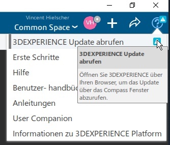 Another issue is, that the CATIA program started on my PC informs me to update it - see the other screenshot please. But I really can't find a way to do so? Is the sollution to reinstall the launcher?
