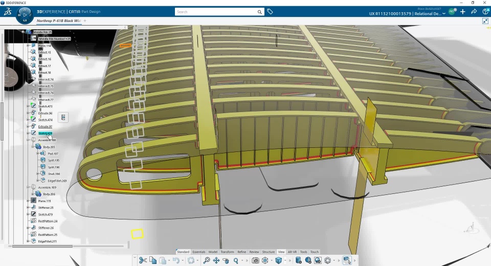After creating Booms structures, I focused myself on the Wings structural parts. I choose to divide the wing in 3 sub-assemblies, in which one I have created a Skeleton with published elements (geometries and parameters)