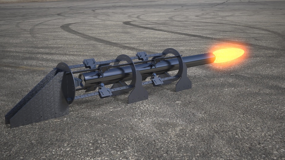 First of all, we use remote-ignition fuses, which have a range of approximately 4 km and are entirely of our own design, to ignite our solid-fuel rocket. Right after the first ignition, the compressed air will come to the combustion chamber of our nozzle, which we have designed aerodynamically and will give an estimated 1500N thrust, where the compressed air will move towards the throat of the nozzle with a pressure of approximately 450 psi. In the throat part, the velocity of the fluid is Mach 1 and the outlet velocity is approximately 2.4 Mach. For now, we will do the static ignition test of our engine, which we have designed and analyzed in a computer environment, in a very short time, stay tuned.