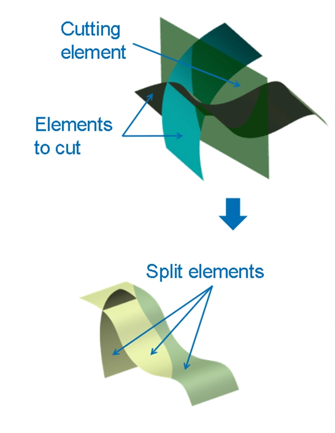 - You can also choose to create the intersection between the element to be cut and cutting element using intersections computation option.