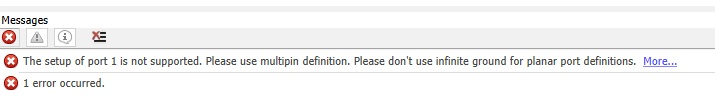 I am working on patch antenna design. My supervisors asked me to ensure that I will have infinite ground and substrate dimensions so I decided to use Multilayer Solver. When I am following internet tutorial on how to design coaxial feed for my antenna, I encounter following problem when I try to perform simulation (as in the attachment)