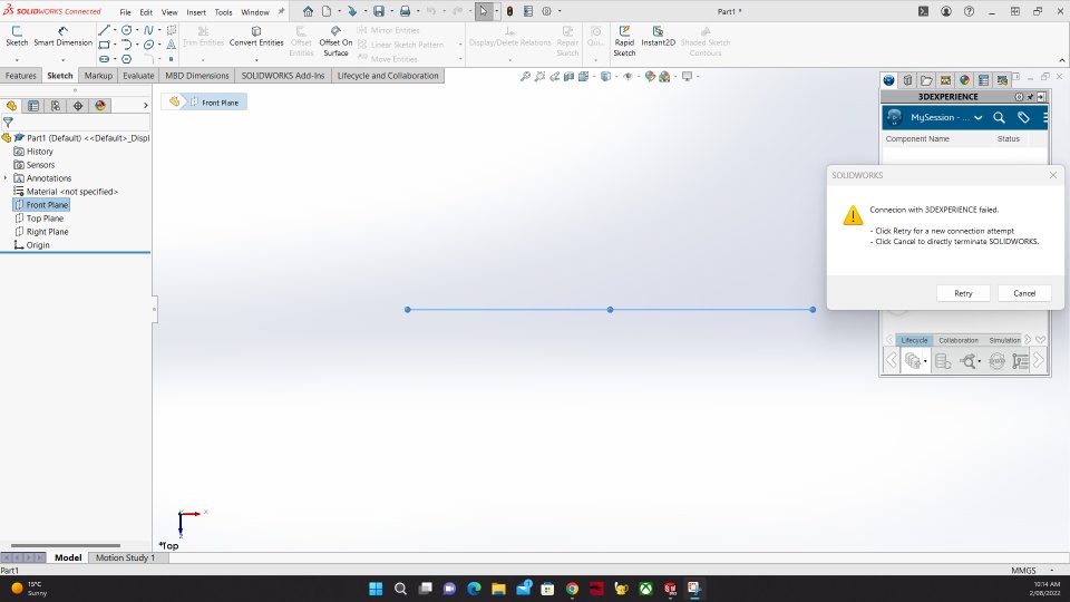 hello, everyone I am trying to open Solidworks connected, it opens but after a few seconds it sowing a dialogue box saying 3Dexperience failed, as shown in the screenshot below, does anyone have any idea how to fix this thank you