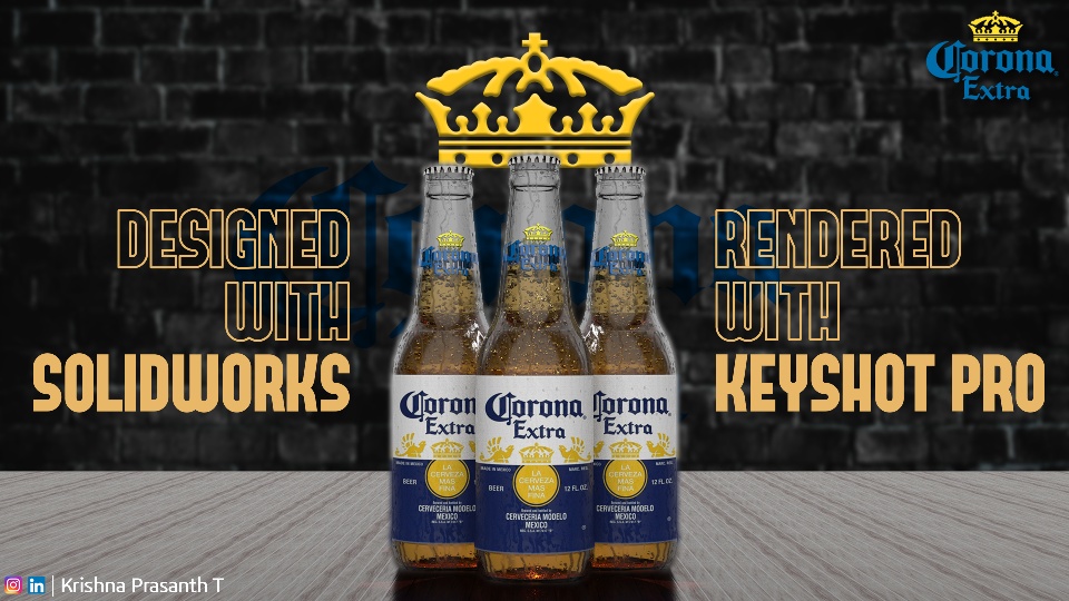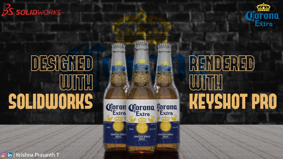 I wanted to share my recent render project with KeyShot Pro. I was enthusiastic about doing product design and rendering, which made me work on this project. The Corona Extra Beer bottle was modeled in Dassault Systémes' SOLIDWORKS. The post-processing was done with Adobe Photoshop. Apart from the basics, I learned how various textures can be added and how photo-realistic rendering can be done.