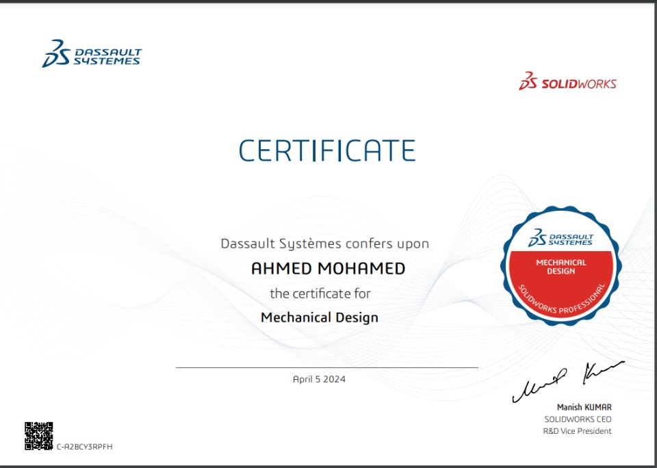 I am happy to share with you that I've officially passed the CSWP mechanical design exam🎉 It's been a journey filled with challenges and growth, and I'm thrilled to have reached this milestone. Thank you to everyone who supported me along the way! CSWP 3DSwym Sennar-SWUG EduSpace Dassault Systémes Edu