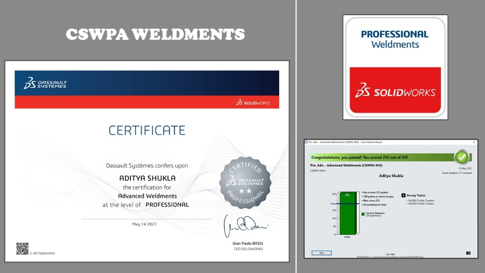 I am happy to share that I successfully clear the #CSWPA_WD Certified Solidworks Professional Advance Weldments . Qualifying this makes me more confident in working with #Solidworks Weldment workbench.