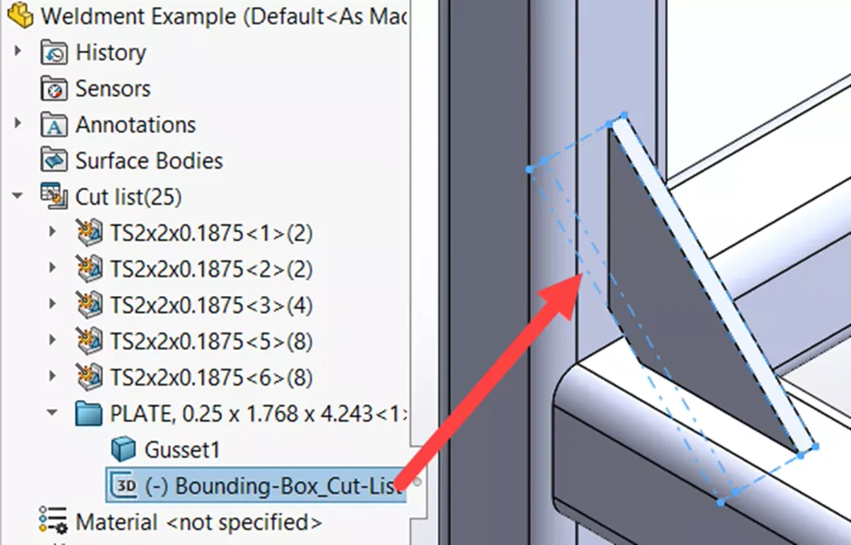 - Cut Lists: A cut list in the FeatureManager design tree groups identical entities in a part. It’s available for parts with weldment or sheet metal features and is critical for organizing and generating a Bill of Materials (BOM).