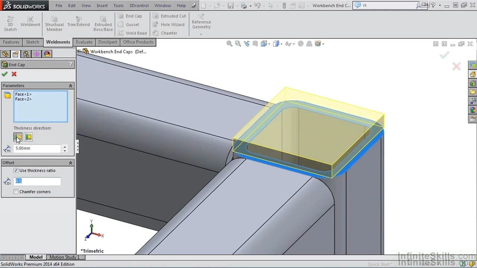 - Add a Structural Member in the Weldments tab.