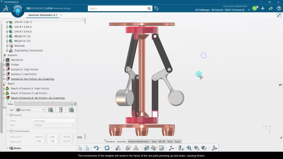 To showcase the power of CATIA Kinematics and Dynamics using the Mechanical Systems Design, Mechanical Systems Experience Apps, I have designed a Purely Mechanical Governor, which works based on Friction to control speed using centrifugal force.