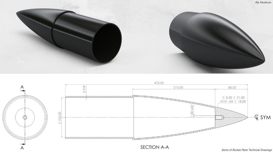 I wanted to share with you my rocket nose cone design and technical drawing, which I made for the Vecihi Rocket Team.