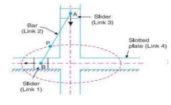 Elliptical trammel is an inversion of double slider crank chain mechanism. A double slider crank chain consist of four links forming two sliding pair and two turning pairs hence called as RRPP mechanism.