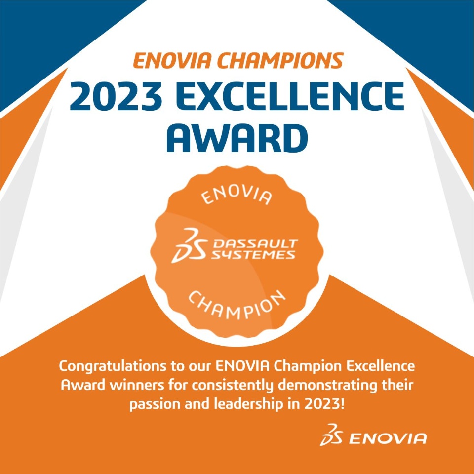 I would also like to thank @SL, @LA, @ND, @PR and the entire ENOVIA Team for recognizing me with this Award. I congratulate all the other champions who were recognized.