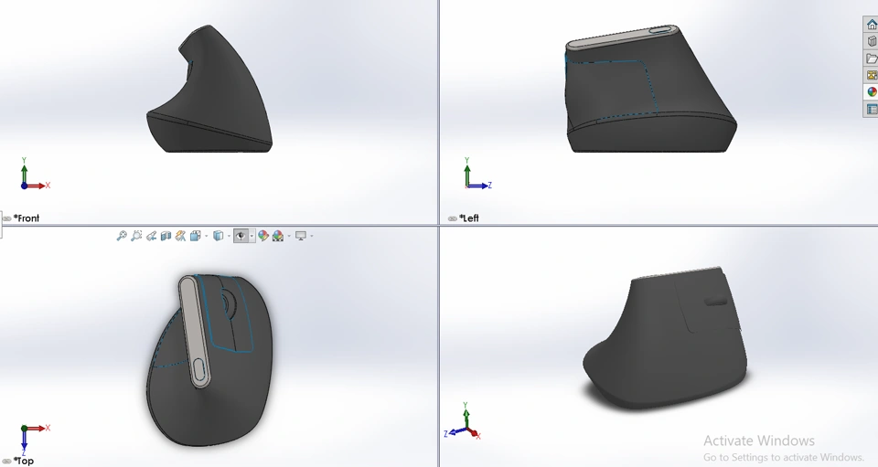 Surface feature was used to create an ergonomic mouse, the render I used Keyshot