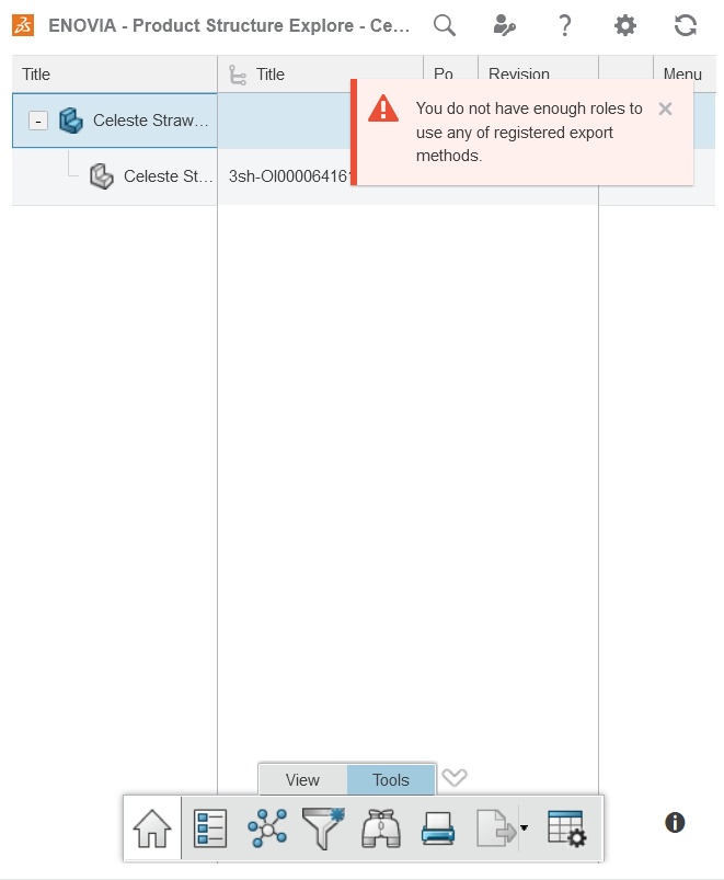 - Opening the model in Product Structure Explore and clicking Tools > Export > Export As. This results in the error shown in the third image.