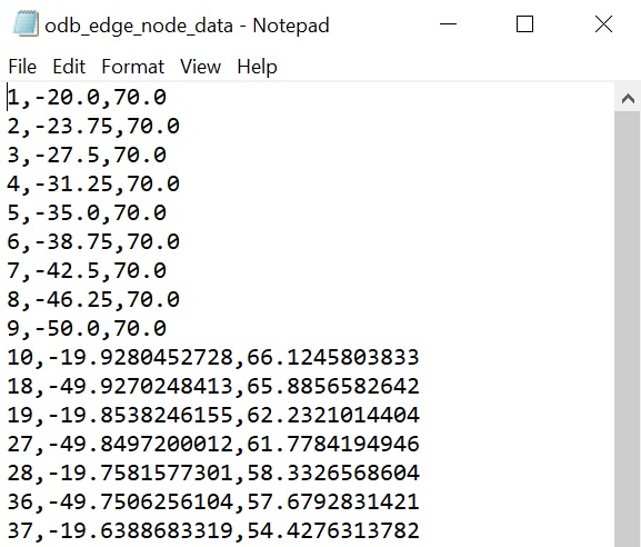 The above written code stores the nodal displacement data in a text file. We can also choose to store the data in an excel file. Also, as seen on line 10, we can just change the "SET-4" to any desired node set for which we want to get the nodal displacement data.