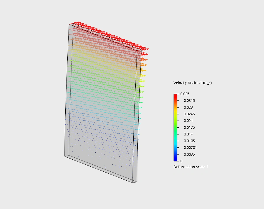 | Velocity Vectors:- The image visualizes a velocity profile where the fluid speed gradually increases from zero at the bottom (likely a fixed boundary) to a maximum at the top, characteristic of fluid flow developing along a solid surface. |