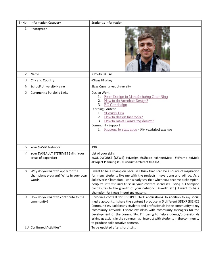 But even if you don’t, do not worry! You still have time to create some posts, share knowledge and showcase your designs! So hurry and start posting, to ensure you have loads of stuff to fill in the form, and become a 3DEXPERIENCE EDU STUDENT CHAMPION!