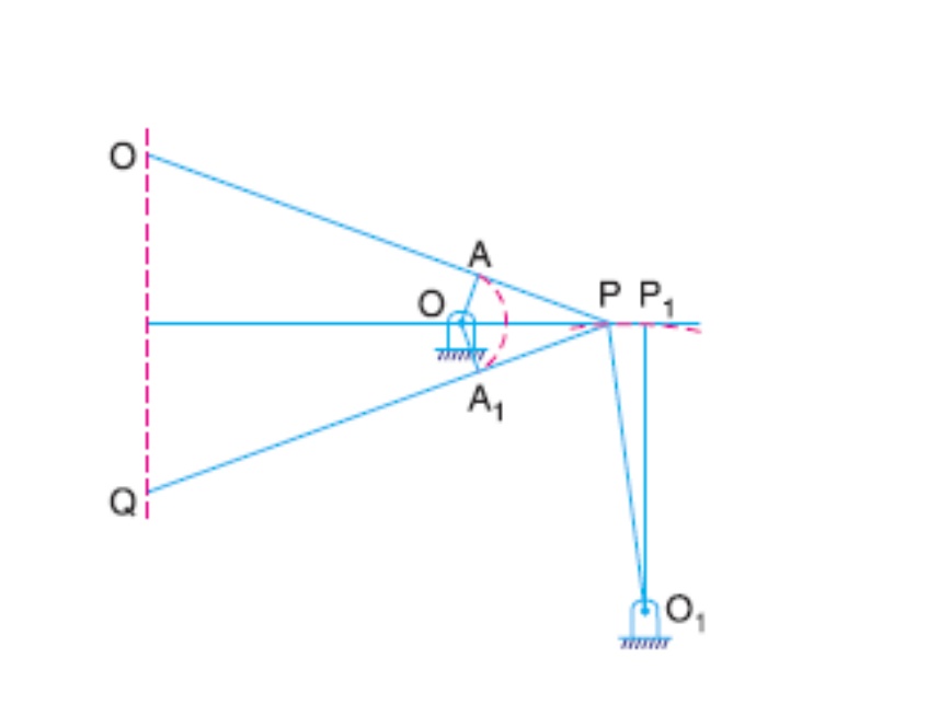 In this, O and O1 are fixed and link OA oscillates about O through an angle AOA₁. Which causes the pin P to move along a circular arc with O₁ as center and O₁P as radius. For small angular displacement of OP on each side of the horizontal, the point Q on the extension of the link PA traces out an approximately a straight path QQ', if the lengths are such that